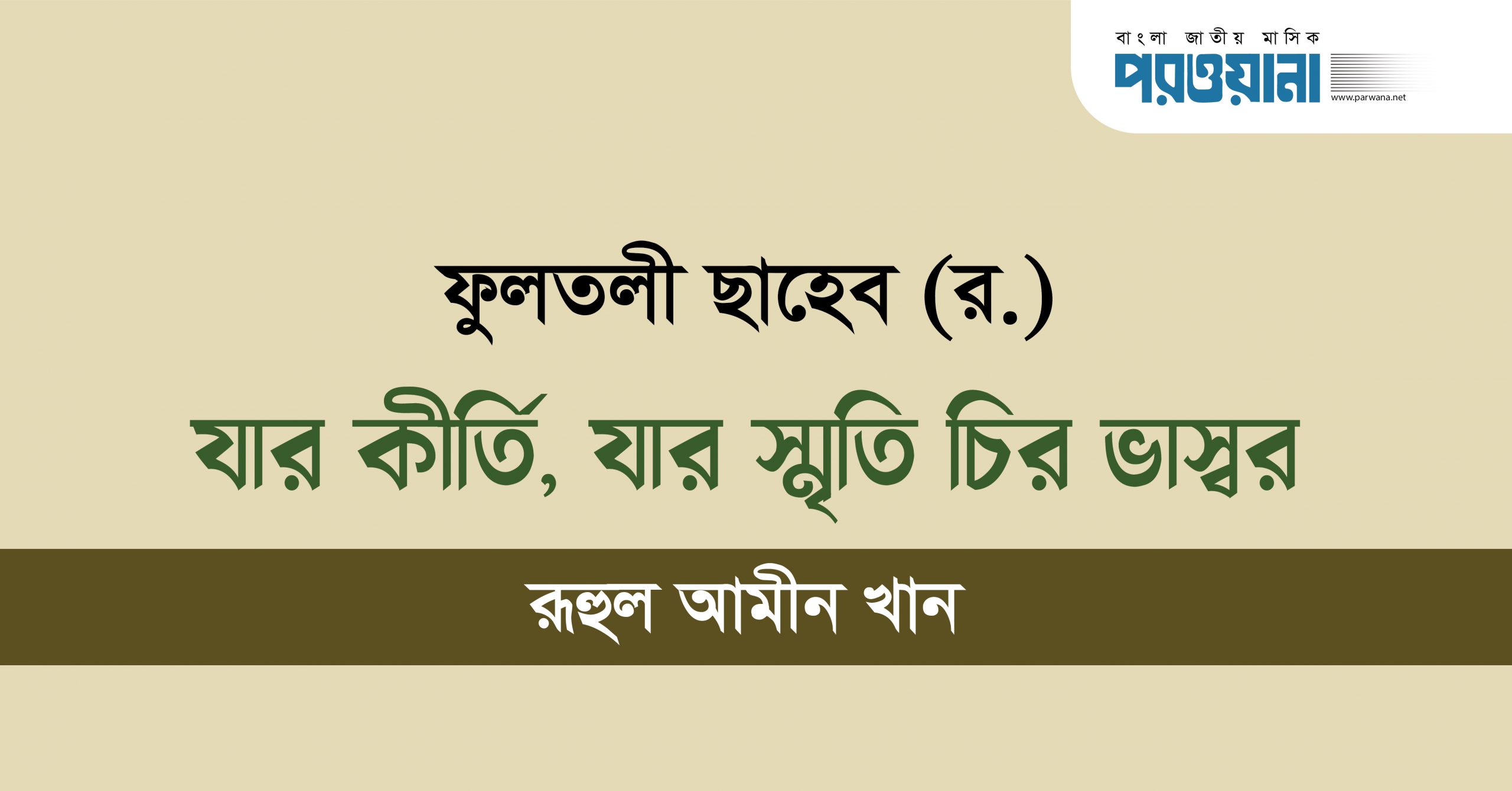 ‘ফুলতলী ছাহেব কিবলাহ (র.)’ এতটুকু পরিচিতিই যথেষ্ট। এই মুবারক অভিধাটি শ্রবণ মাত্র, উচ্চারণ মাত্র মানস-নেত্রে, মনের মুকুরে ভেসে ওঠে যে জ্যোতির্ময় অবয়ব-সুন্নতী লেবাসে ভূষিত, সবুজ পাগড়ি পরিহিত, প্রভাব বিস্তারী গৌরকান্তি,